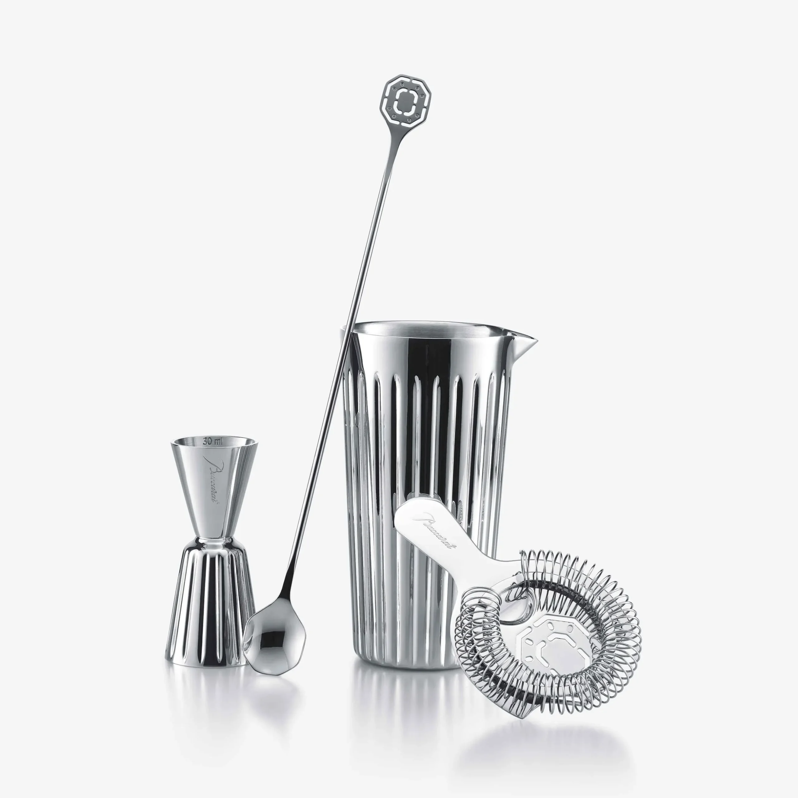 Harmonie, collection iconique de Baccarat, se réinvente avec audace et raffinement, dévoilant une nouvelle ligne d’accessoires de bar dédiée aux passionnés de mixologie : shaker, verre mélangeur, passoire, double doseur et cuillère. Pensées pour les créateurs de cocktails pour qui chaque détail compte, ces pièces allient design et fonctionnalité pour offrir une expérience unique. Avec Harmonie, chaque dégustation devient une célébration. Le set d’accessoires de bar Harmonie, comprenant un verre mélangeur, une passoire, un double doseur et une cuillère, s’inspire de l’allure moderne et de la pureté graphique de la collection Harmonie en cristal. Les lignes verticales épurées et l’octogone emblématique de Baccarat se déclinent sur chaque pièce, affirmant une signature visuelle distinctive. Confectionnée en inox poli miroir, chaque pièce offre une résistance exceptionnelle pour préparer vos cocktails préférés avec aisance et durabilité.