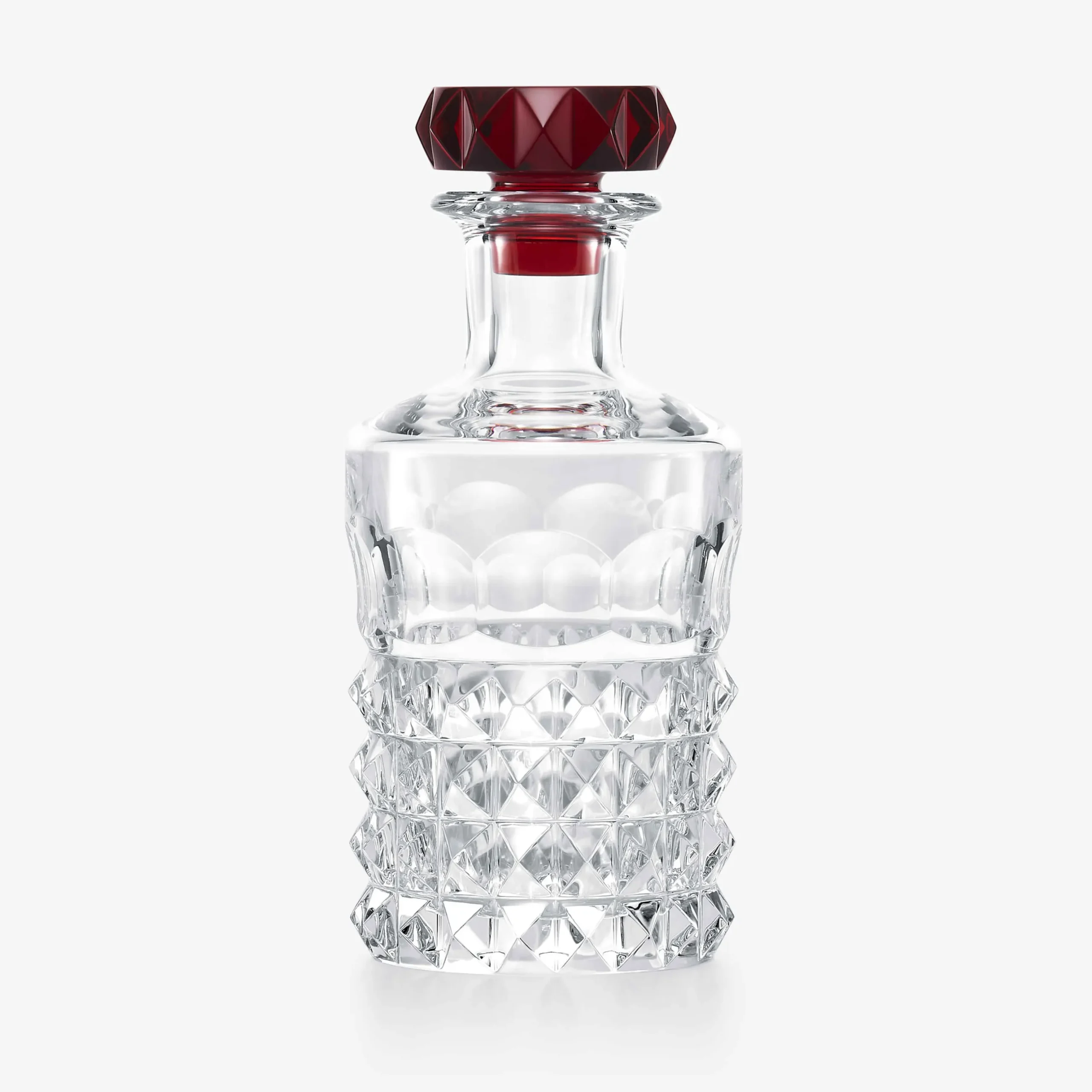Baccarat dévoile une collection de ses carafes emblématiques couronnées d’un bouchon en cristal rouge, couleur signature de la Maison. Symbole du feu, de l’amour et de la passion, le rouge est une teinte énergisante qui stimule les sens. D’une intensité profonde, le rouge Baccarat résulte de la fusion entre cristal clair et poudre d’or 24 carats. À l’instar des lustres Baccarat rehaussés d’une pampille rouge distinctive, ces carafes à vin ou à liqueur Harcourt, Harmonie et Louxor incarnent un artisanat raffiné et apportent une touche de couleur festive et joyeuse à chaque occasion. Taillée de motifs géométriques inspirés des pyramides de l’Égypte antique, la carafe à whisky Louxor s’anime de reflets ambrés. Véritable bijou de bar, elle incarne la fusion de l’élégance et de l’audace de Baccarat. Surmontée d’un bouchon circulaire, cette pièce imaginée par Thomas Bastide invite les amateurs de whisky à un voyage sensoriel unique.