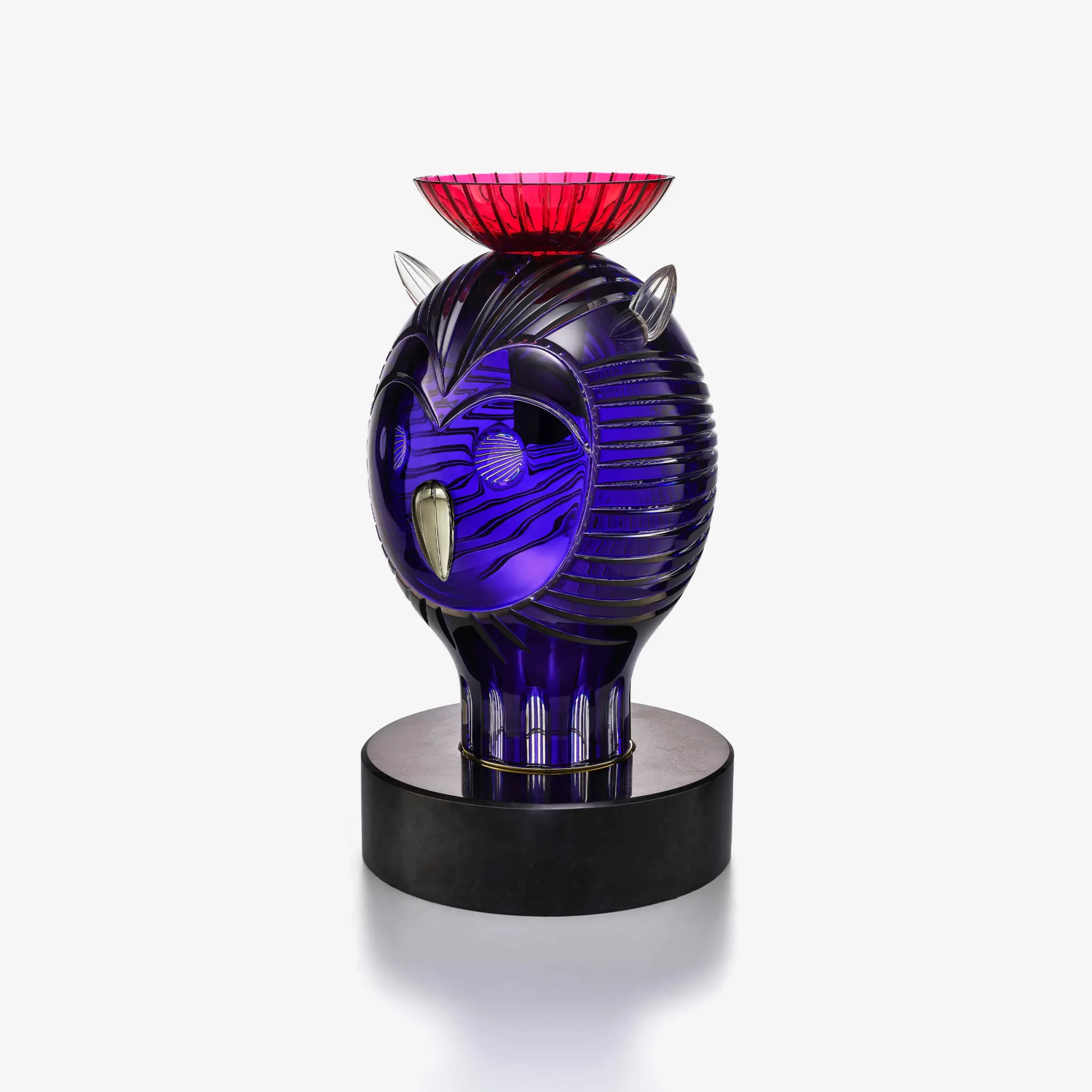 Imaginée par Jaime Hayon, la collection Faunacrystopolis forme une joyeuse tribu de six animaux de cristal en édition limitée dont un Hibou au regard hypnotisant ! Jaime Hayon, l’enchanteur, impose à nouveau son style fantastique dans l’univers Baccarat et offre une vision singulière de la faune sauvage. Le plus cool des designers donne un nouveau twist à la sculpture animalière. Il revisite les codes existants pour inventer de nouvelles formes et recréer la personnalité de chaque espèce : les silhouettes toute en rondeur se parent de teintes électriques, de tailles profondes et de motifs géométriques. Entièrement réalisée à la main par les artisans de Baccarat, chaque pièce est unique et symbolise le savoir-faire exceptionnel de la manufacture. Posé sur un socle en marbre noir, le hibou en cristal clair, bleu et rouge célèbre la beauté de la nature et symbolise, entre fantaisie et émotion, l’importance de protéger le monde qui nous entoure.